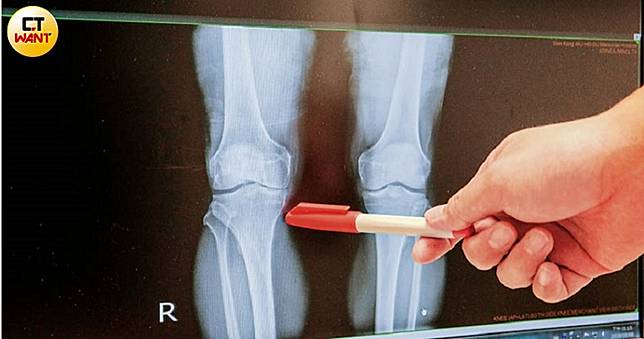 退化性關節炎初期好發於膝蓋內側,骨頭間隙會明顯狹小。左為關節退化、右為正常關節。(圖/鄭清元攝)