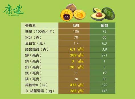 每100公克仙桃的膳食纖維是蘋果的5~6倍,能夠幫助腸胃道健康。礦物質方面,中國農業部「亞熱帶蔬果品質監測中心」發表的一篇期刊指出,蛋黃果含有14種礦物質,其中含量較高的是鉀、鈉、鈣、鎂和磷。另外和其他黃色蔬果一樣,仙桃富含能抗氧化和保護眼睛的β-胡蘿蔔素。