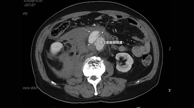 【NOW健康 傅婷/宜蘭報導】宜蘭1位67歲李先生因突發腹部劇烈疼痛至羅東博愛醫院急診就醫,經電腦斷層掃描發現腹部有顆8.2公分的腹主動脈瘤破裂,隨時有出血致死的危險,就像體內有1顆不定時炸彈爆炸,所幸在進行緊急手術治療後,搶救回寶貴性命。