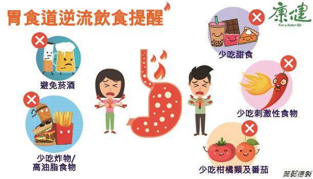 想預防胃食道逆流,則要少量多餐,避免睡前四小時進食,飯後不能馬上躺下或進行激烈運動,且平日要少吃刺激性食物,丁義芳也特別指出,像秋冬常見的薑母鴨、羊肉爐也應減少攝取。