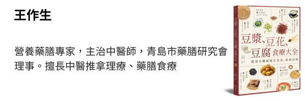※ 內容授權自《豆漿、豆花、豆腐食療大全:跟著中醫師養生美容、防病治病》,作者為王作生,幸福文化出版。