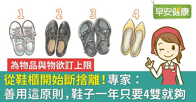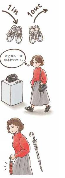 舉個例子,當我決定白色的鞋子只需要一雙後,便遵守一進一出的規則,於是鞋子的數量就不會增加了。