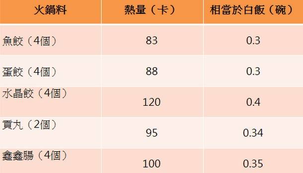 常見的醬料如沙茶醬、芝麻醬、腐乳醬、蛋黃醬等,熱量都不低,例如2湯匙的沙茶醬就有200卡的熱量,相當於一碗8分滿飯的熱量,一餐火鍋吃下來,油脂及鈉含量攝取量很容易就超過一天的需求量。