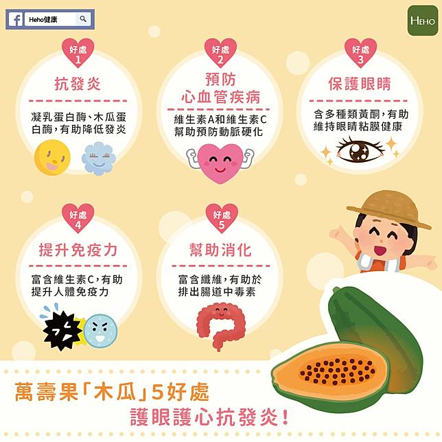 在台灣木瓜全年都有採收,但盛產期在8月中旬至11月下旬,在1-2月及5-7月的生產量較少。而木瓜因為含有豐富的抗氧化成分,所以也有萬壽果的美譽。因為它可以抗發炎、預防心血管疾病,所以也曾經被世界衛生組織選為最營養的水果之一。以下就帶你了解木瓜有什麼好處!