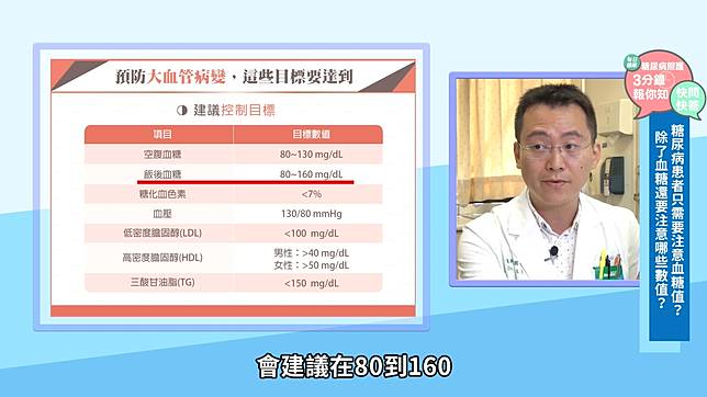 糖尿病患者只要注意血糖數值達標即可?血壓、血脂也會影響糖尿病的併發症甚至死亡率?中國醫藥大學附設醫院新陳代謝科醫師李國陽指出,第二型糖尿病患是心血管疾病高風險族群,而控制血糖的觀念也應該轉變,不可以為血糖愈低愈好,以致於有發生低血糖的風險。