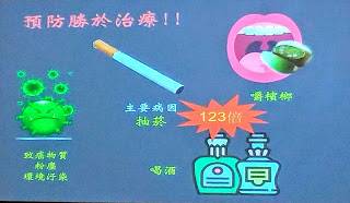 郭綜合醫院耳鼻喉科許恆睿醫師表示,口腔癌可能的危險因子包括嚼食檳榔、抽菸、喝酒還有蛀牙;根據相關研究指出,若有抽菸及嚼檳榔習慣,罹患口腔癌機率較一般人增到89倍,若同時有抽菸、喝酒及嚼檳榔3種行為,罹患口腔癌機率為一般人的123倍。
