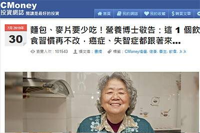 前天(2019-8-10)收到一個簡訊,標題是「麵包、麥片要少吃!營養博士敬告:這 1 個飲食習慣再不改,癌症、失智症都跟著來…」。