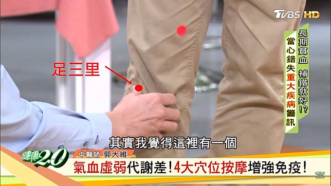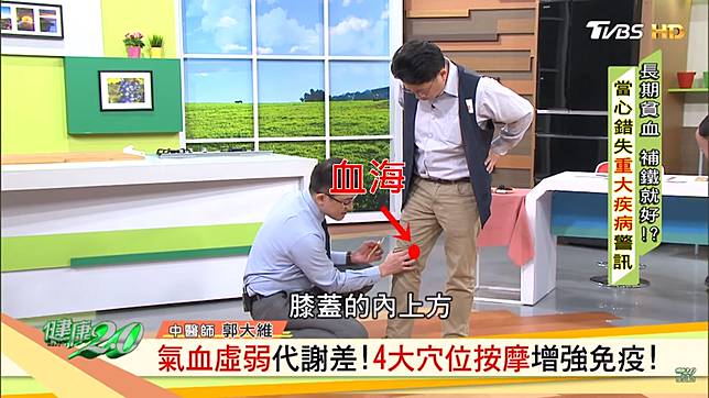 貧血的人大部分都是氣血虛弱,不適合做劇烈運動,中醫師郭大維建議可從溫和的走路運動幫助氣血循環,平時在家也可按4穴道,可順氣血,又增強免疫力。