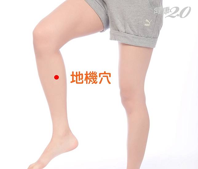 靠近膝蓋約三指處,有一個「地機穴」,在此處按一按,會痛就要注意氣結。