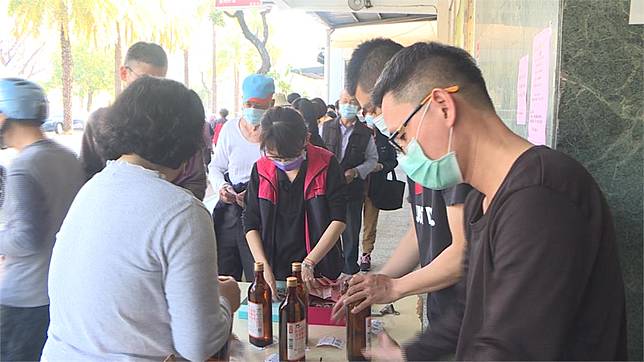 工作人員發送號碼牌,貨有多少就發多少,其他晚到的民眾只有扼腕,下次再來。目前酒精的產量也持續增加,各地菸酒公賣局販售處會貼出公告訊息,在各區處都會有酒精的不定期發售,民眾可多加留意。