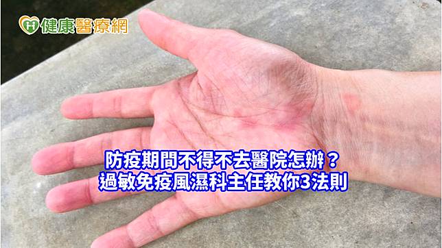 至於常規的門診,過敏免疫風濕科病患到醫院時,一定要戴口罩、不要用手揉眼睛、挖鼻孔,在醫院用完廁所要確實洗手,到醫院時避免經過急診、發燒篩檢站等地點,回家後要立即丟棄口罩、仔細清洗雙手、臉部等。