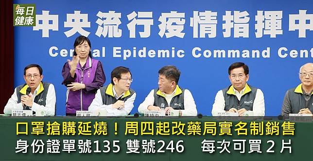 武漢疫情升溫,全球口罩供不應求,中央流行疫情指揮中心原實施於全國超商通路的口罩販售,將改為持健保卡實名制購買制度。中央流行疫情指揮中心指揮官、衛福部長陳時中今天(3日)於記者會指出,市面搶購口罩問題與供需不平衡、民眾搶購以及不必要的過度使用有關。基於上述原因啟動實名制購買制,呼籲民眾在戶外不需配戴口罩,優先讓有生病者有口罩可用。