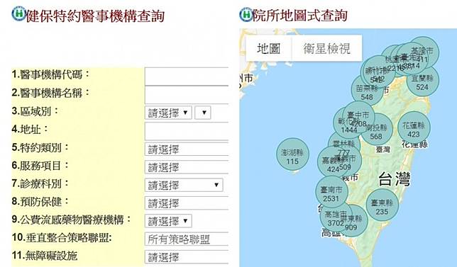 健保署提供「條件查詢」和「地圖查詢」兩種方式;「條件查詢」需設定搜索條件,選擇所在縣市、鄉鎮區後,在特約類別處點選「藥局」,按下查詢即可。使用「地圖查詢」則需要先點擊指定縣市、查看明細,進入區域頁面後,特約類點選「藥局」即可查詢。