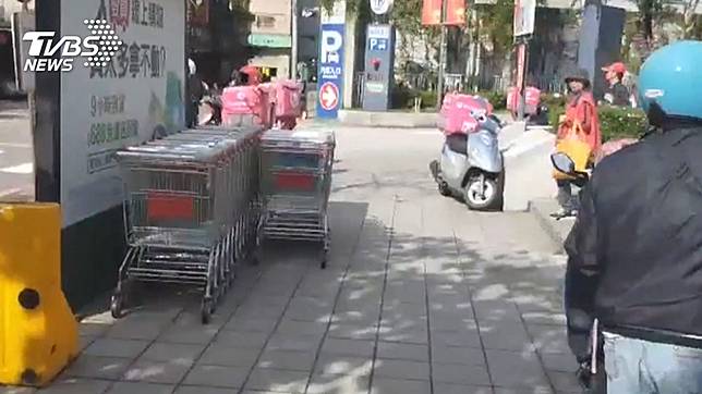 板橋大賣場門口出現外送機車海,數一數大概50輛。另一家業者在萬華的分店,則是有外送員人龍,等著取貨。外送平台搶生鮮外送市場,價格超殺,滿400送200,等於打對折,業者接單到手軟。