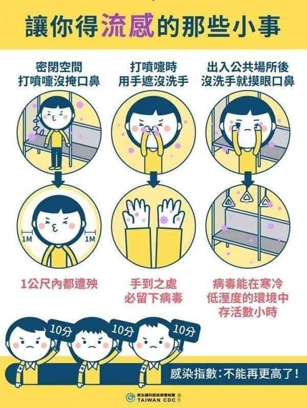 這名醫師在臉書《急診女醫師其實.》發文表示,家中兩個小孩很愛搶按電梯,甚至會搶到吵架,不過最近都被她禁止,「通通不准按」。醫師引用福部疾病管制署發布的「讓你得流感的那些小事」貼圖,提醒民眾,3大日常習慣感染指數最高: