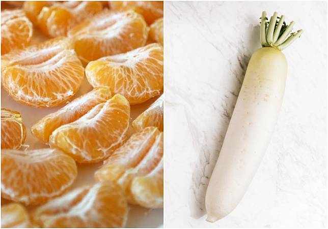 橘子所含的成分會使牛奶凝固,影響胃的消化吸收,因此不宜在進食白蘿蔔或牛奶後,立刻食用橘子,以免造成不適。最好能相隔2小時服用才安全。
