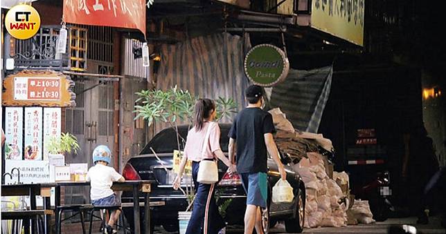 買好餐點後,李國毅右手提著食物,左手熟練地牽起橘子,動作一氣呵成。走著走著,換橘子勾緊李國毅的手,親密地依偎在他身邊,看來相戀多年的他們,儘管曾經分合,如今感情已相當堅定。小倆口甜蜜地回到車上,李國毅便一路順暢地開回他的新居。