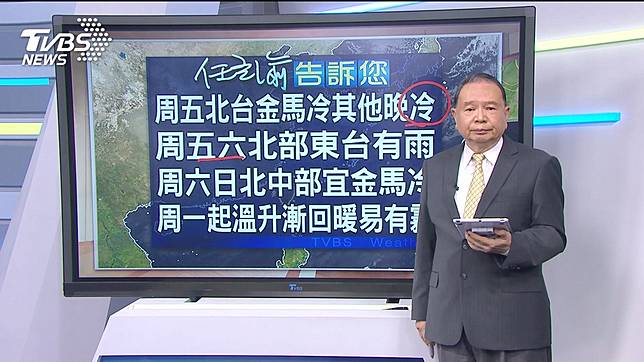 周五溫降,北台灣、金馬冷,其他地區晚冷;周五六北部東台有雨,周日起花東轉雨;周六日北中部、宜蘭金馬冷;周一起溫升漸回暖,西台金馬易有霧。