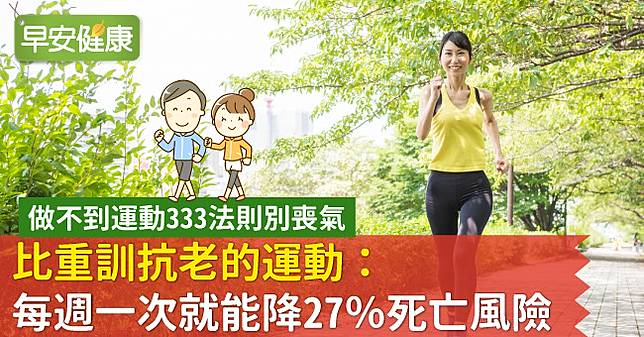 別失望,就算做不到運動333法則也別自暴自棄,只要維持運動習慣,即便是低強度、短時程的有氧運動對健康仍有一定的幫助。國外研究指出,只要一週跑步一次就會有很高的健康效益,能有效降低死亡風險。