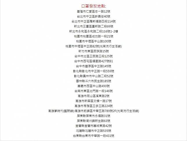口罩發放的指定門市地點如下: