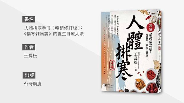 作者/王長松 整輯/黃慧玫 圖片設計/Anita 本文出處/摘錄自台灣廣廈出版《人體排寒手冊【暢銷修訂版】:《傷寒雜病論》的養生自療大法》