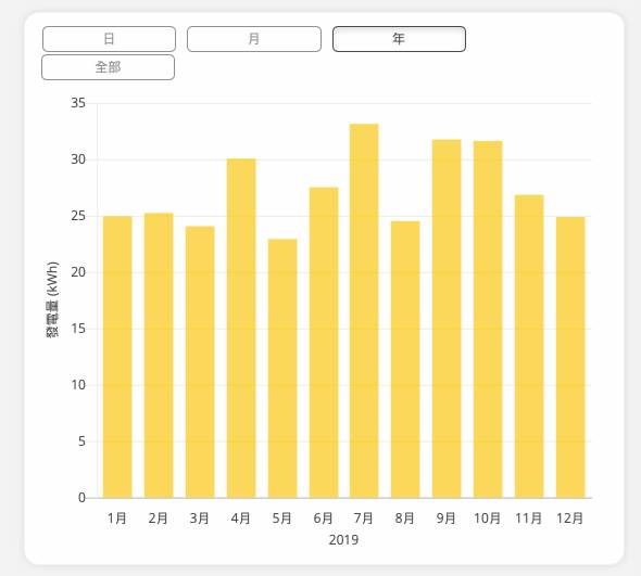 光電部分,由於台灣的光電裝置總量快速增加,從總發電量判斷其季節影響誤差可能過大。因此我們向光電公司取得桃竹苗地區某單一案場的年發電量。從圖中可知,最高點落在7月,但冬天的發電量仍有七、八成的表現。