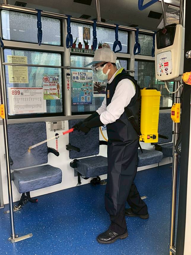 新北市交通局表示,自1月起即要求市區公車出車前皆須消毒1次,針對車內常碰觸的地方加強清潔,如車內扶手、欄杆、座椅及下車鈴等設施,請民眾安心搭乘,無須過度恐慌。