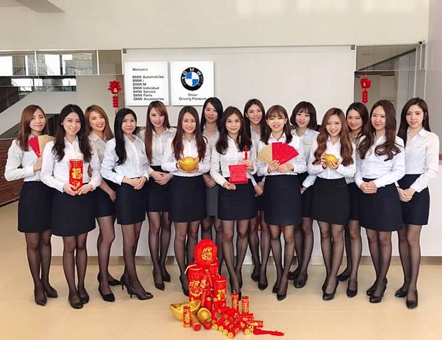 〔即時新聞/綜合報導〕農曆新年即將到來,許多人準備辦年貨,有些店家也開始向民眾拜年,德國知名車商BMW的台灣代理商汎德台南分公司臉書PO出14名女員工的照片,穿著制服排排站,手拿著各式年節商品,並統一穿著黑色絲襪,讓許多網友直呼,「想要換車了!」