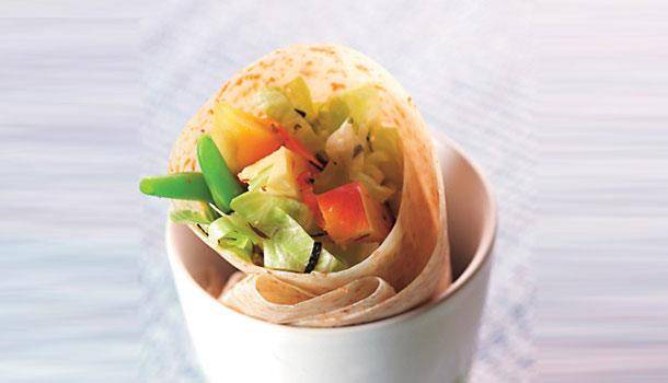 你也可試試簡易版春餅:準備潤餅皮,鋪上任一種五穀粉如黑豆粉,用家裡冰箱的蔬菜燙熟、水果洗淨切條擺上,想多點口感的,可以把堅果碾碎成粉灑上,或放點蔓越莓果乾就是簡單春餅,過年期間吃膩了可以換換口味,讓腸胃也能喘口氣休息一下。