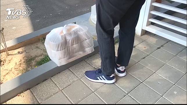 69名武漢台商隔離在台中某機關,接近中午用餐時間便當和飲料外送員陸續抵達。