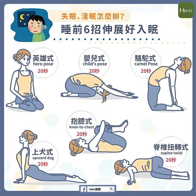 老是失眠、淺眠,而且就算有睡,起床還是覺得很疲勞嗎?在長期睡眠不足的情況下,對身體健康的影響其實比你想的還要糟糕,不僅容易讓情緒失控、注意力不集中,還會讓罹患心血管疾病的風險大增。想要改善這些狀況,好好的睡一覺很重要。以下教你6個瑜珈姿勢,在睡前花一點時間伸展,就可以幫助身體放鬆紓壓,幫助入睡並減少淺眠的狀況發生喔!