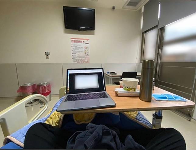 程序完成後,該名網友當晚就上救護車前往負壓隔離病房。他指出,病房是「蠻高級」的單人房,為避免病毒殘留,沒有設置把手;房間和走廊之間有兩道門,護理人員進房前都要穿上防護衣,出去則要在中間的緩衝空間進行消毒。這段期間他不能踏出病房,私人用品也是請家人拿給警衛,最後才送到房間。