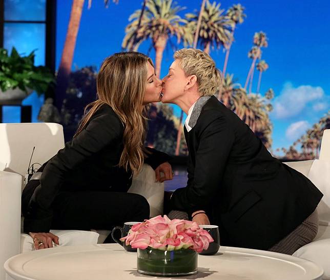 身為已經公開出櫃並結婚的艾倫則自然回說:「為何大家都對這件事大驚小怪?我會親吻男生的,就像是那樣只親吻嘴唇,只是我不會跟男人親熱!」艾倫反問珍妮佛安妮斯頓上次跟女人接吻是什麼時候,這位《六人行》(Friends)演員就回答:「嗯…其實我並不是那種會去親女人嘴唇的人。」