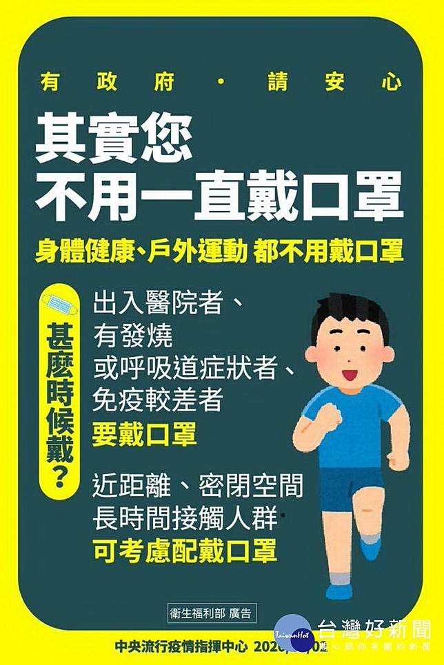 衛生局呼籲,口罩使用時機應著重在「看病、陪病、探病的時候要戴,有呼吸道症狀者應戴口罩,有慢性病者外出建議戴口罩」,健康民眾及一般學生無須戴口罩,請民眾將口罩留給需要的人,讓資源發揮最大效用。