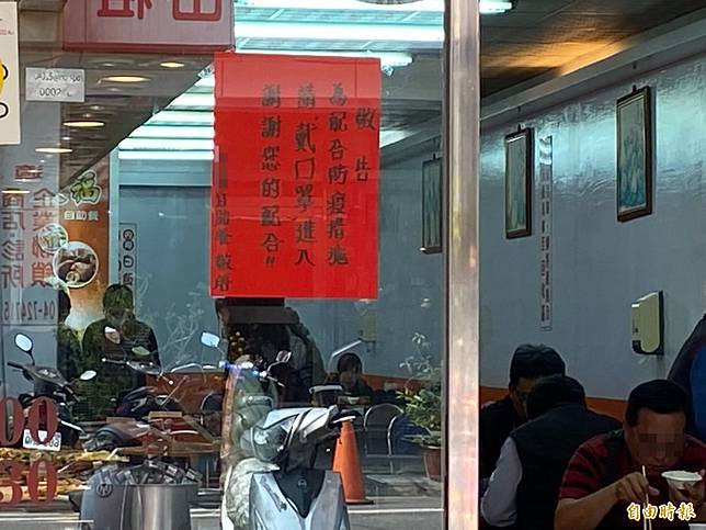 〔記者張聰秋/彰化報導〕防疫時期民眾聞疫色變,彰化縣有1家自助餐業者,門口張貼配合防疫要戴口罩才能進入,不少人不曉得有此規定,沒戴口罩被店家請出,但店內用餐照常開放,拿下口罩才能吃飯,對比之下,民眾看了傻眼,自助餐店不是醫療院所,比照醫療單位規範作法難免讓人有矯往過正的感覺,反讓民眾更覺得害怕,引發恐慌。