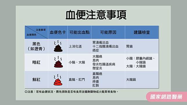 他提醒,大便有血不一定是痔瘡,最好養成觀察糞便的習慣,發現異常應由醫師進一步安排檢查,找出疾病原因。