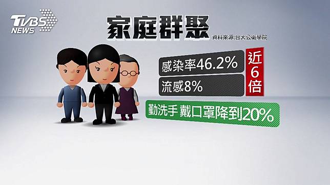 台灣確診案例中,家庭群聚感染增多,台大公衛學院分析,家庭群聚感染的機率是46.2%,其實在家裡也可以做好防護,來看以下這則報導。