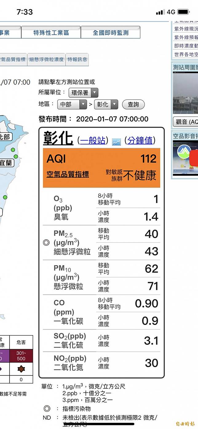 不少民眾今早上班,開車在高速公路彰化段時發現周邊都是一片霧茫茫,還以為是起了大霧,原來全都是被髒空氣給包圍。