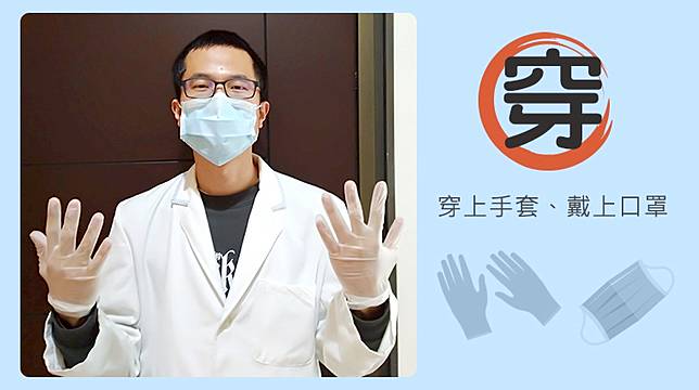 ▲「穿」:穿上手套、戴上口罩。