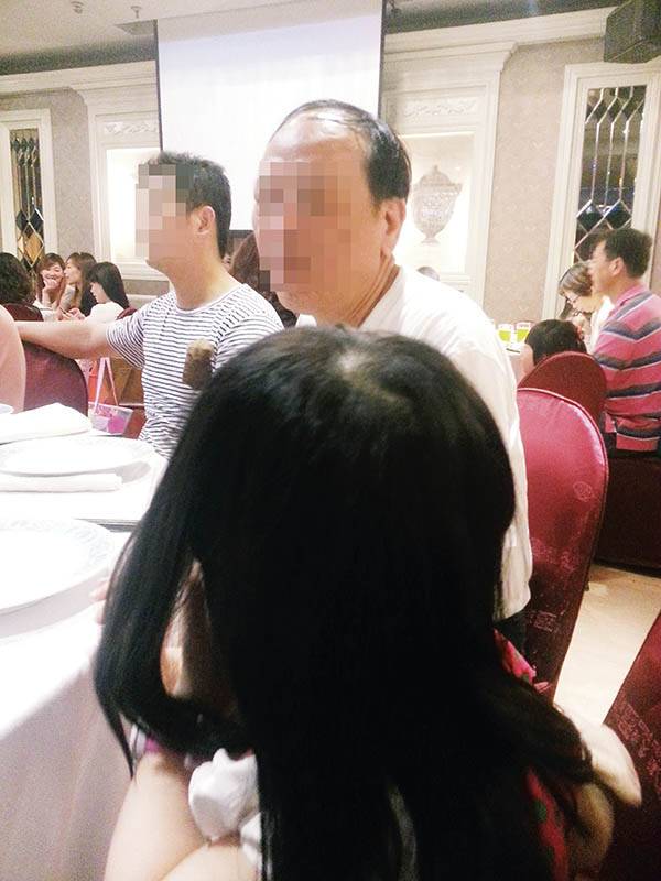 施家金元配在宴會中看到QQ喊爸爸的畫面,翻臉直接走人。(圖/讀者提供)
