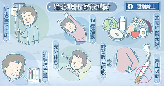 切除部分肺臟後,患者術後肺功能會受到影響,這部分要靠術後復健,醫師在術前就會先教導患者做呼吸訓練,並提醒術後也要持續練習,如此,可以把肺功能的影響減少到最低。