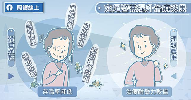 李章銘醫師解釋,身體的免疫力要靠營養支持,對癌症治療的預後影響很大,除了術後併發症跟營養狀態有關係,長期存活與營養狀態也有關係。
