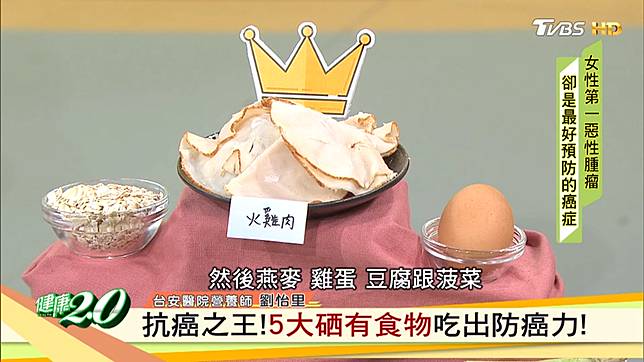種種防癌好處,讓硒被譽為「抗癌之王」,那麼該怎麼補硒呢?營養師劉怡里指出,由於硒是微量元素,大約50微克就相當足夠。她整理出以下5大高硒食物: