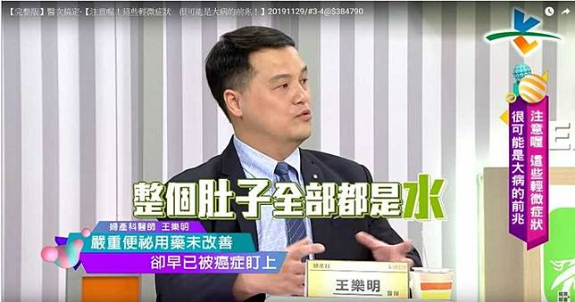 王樂明說,婦人除了腹水之外,子宮旁邊還有一團東西,「猜八九不離十,就是卵巢癌了,算是走到末期了,所以整個腹水全部都是了。」王樂明表示,這樣的病況,存活率大約只剩1至2成。