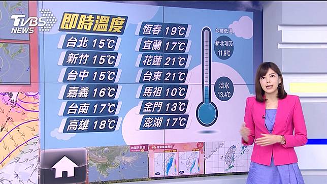 強烈大陸冷氣團報到,接近寒流等級,未來一天會比一天冷,以今天(27日)來說,各地清晨低溫在13到15度,白天北部、宜蘭整天不到20度,其他地區21到24度,出門記得穿暖別著涼,降雨方面,今天東半部、基隆北海岸有短暫雨,西半部多雲偶爾飄雨,仍建議攜帶雨具。