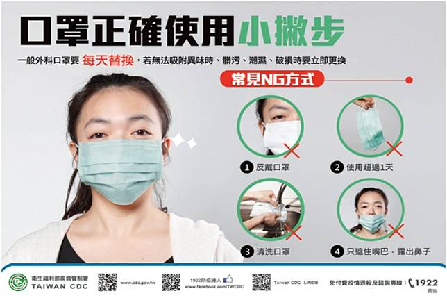 4、任何的口罩都不要重複使用、與他人共用、甚至水洗再用。已使用口罩,可能因為已受病毒污染,重複使用會因為擠壓或者濕氣滲透,造成整個口罩失去防護效果,水洗也可能會如此。