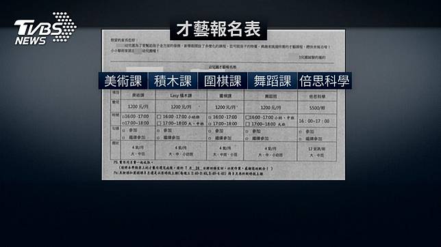 記者周祐萱:「位在信義區的幼兒園,遭家長投訴,明明是準公共化,卻開設才藝課,一學期得多收一萬八千多元。」