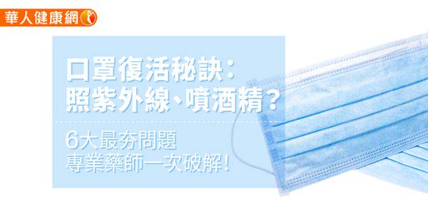 新型冠狀病毒肺炎(武漢肺炎)疫情嚴峻,不少民眾仍然抱怨:「口罩買不到、根本不夠用」,引起一陣口罩荒。正當大家急尋解套方法時,有醫師發文「口罩復活方法」,包括照紫外線燈、照太陽,甚至有網友分享吹風機吹、用電鍋乾蒸、用酒精噴等妙招,到底真相如何?針對口罩復活再使用6大最夯問題,來聽聽藥師怎麼說。