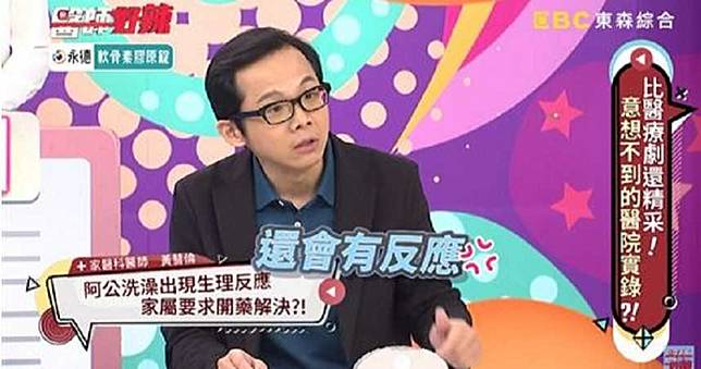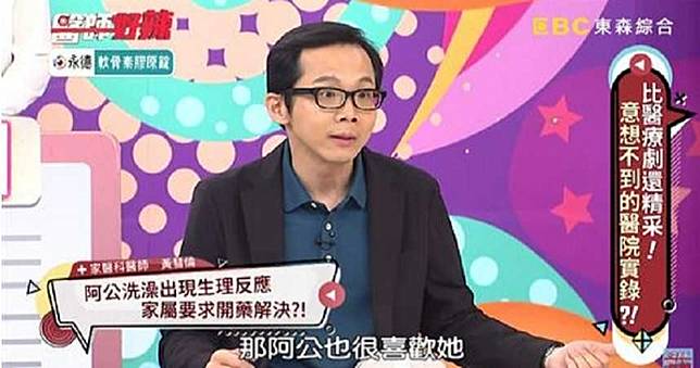 黃慧倫表示,當家屬旁敲側擊阿嬤不滿的原因,阿嬤在某天不經意向親戚抱怨,原來有一次看到看護,在幫阿公洗澡的時候,阿公都70幾歲的人,居然還會有生理反應,她認為阿公都已經這麼老了,自己幫阿公洗怎麼都沒有反應,阿嬤氣到吃不下飯、睡不著覺,甚至還要求醫生能開藥讓阿公不會有反應,讓醫生聽完也一度不知道該如何回覆阿嬤的要求。