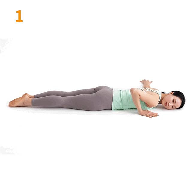 雙腿打直,讓後腦杓、臀部和後腳後呈一直線。手掌用力推地,眼睛直視地面,停留姿勢,慢慢呼吸 10 次。